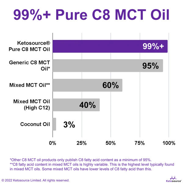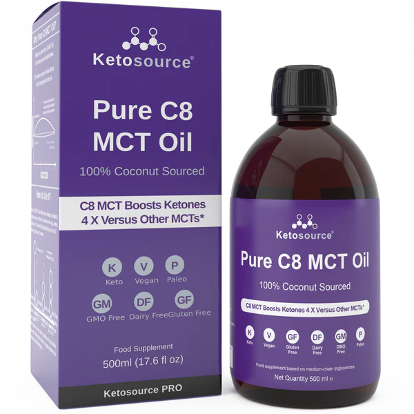 زيت مُعزِّز للكيتون، يُضاف إلى المشروبات الخالية من السعرات الحرارية أو يُؤخذ مباشرةً. مُصمَّم لمساعدة أي شخص يعاني من حالة الكيتوزية، وهو مثالي لمن يتبعون حمية الكيتو والصيام. يُناسب أي نظام غذائي
